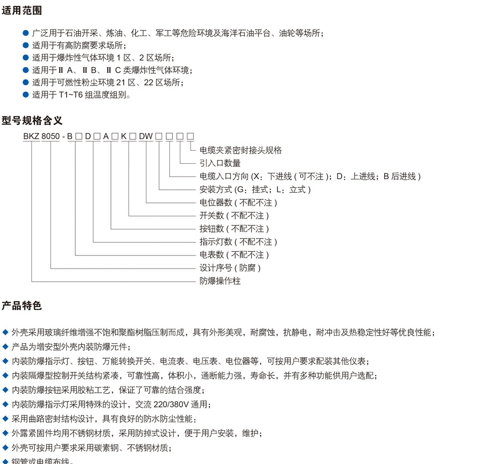BKZ8050系列 防爆防腐操作柱( II C、DIP)
