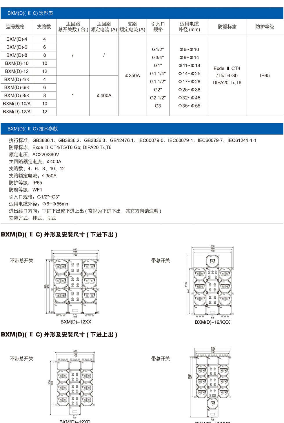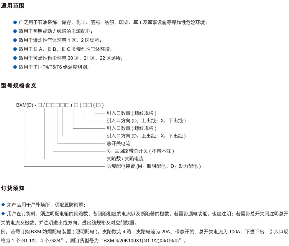 BXM(D)系列 防爆配电装置(照明、动力配电)( II B、I1 C、DIP)