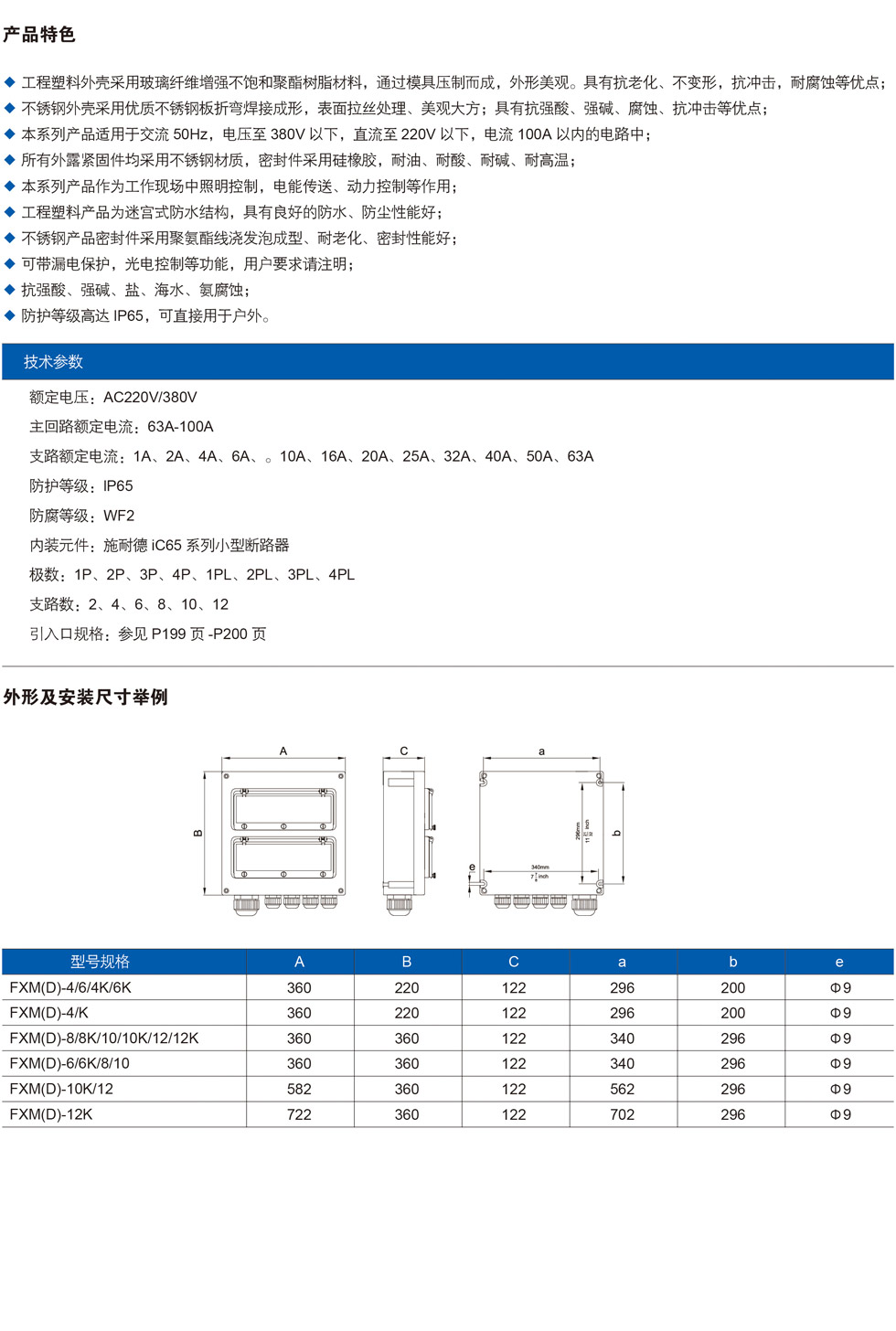 FXM(D)系列 防水防尘防腐照明(动力)配电箱(工程塑料、不锈钢)
